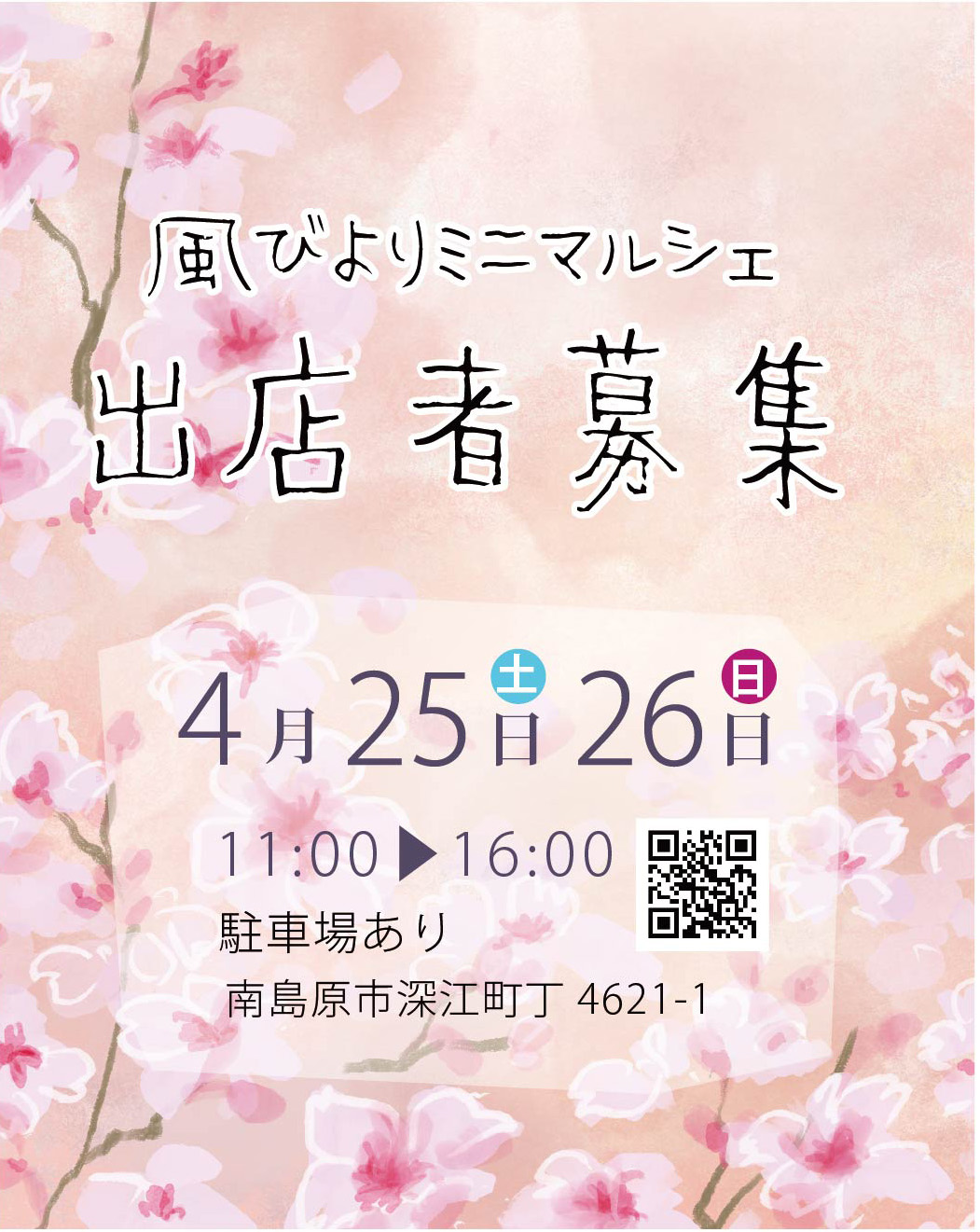 2026年4月25日(土)、4月26日(日)風びよりミニマルシェを開催いたします。