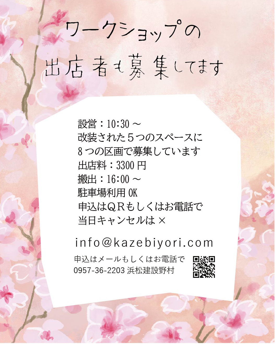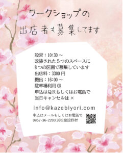 春の心地よい季節、新緑の美しい光景が広がる風びよりで一緒に素敵なミニマルシェをつくりませんか。